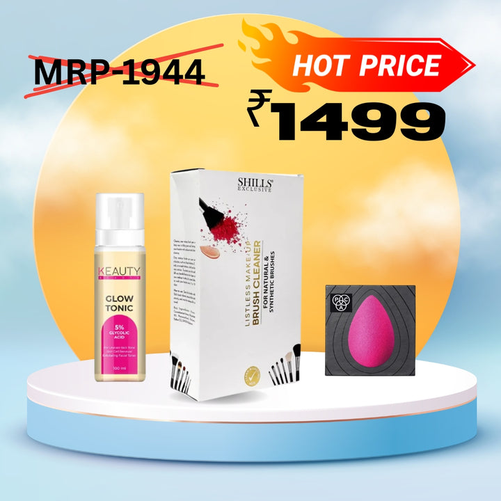Combo Offer Shills Exclusive Makeup Brush Cleaner & PAC Beauty Blender Sponge & Keauty Beauty Glow Tonic Toner