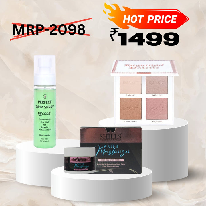 Combo Offer Shills Water Moisturizer & Recode Grip Spray & IMAGIC PROfessional 4 Color Highlighter Palette