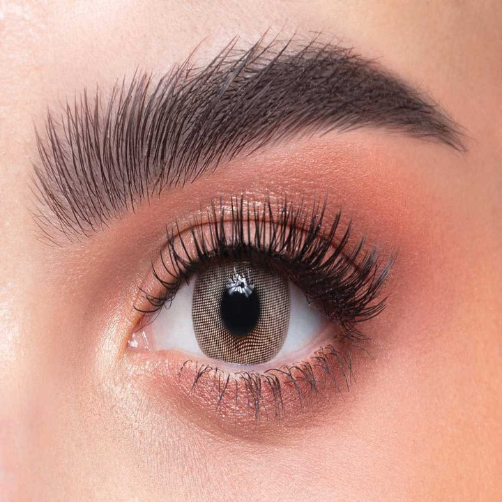 Dahab Lumirere Brown contact lens is a perfect blend of light brown and gray shades with a unique starburst pattern and soft limbal ring. Ideal for day time and evening wear, this natural colored lens is suitable for dark eyes and comes with or without prescription! If you are looking for the most natural brown eyes then Dahab Lumirere Brown is the shade for you. This cosmetic lens comes with a subtle limbal ring and shifts into hazel and grey near the center to give the incredible color that has won the hearts of customers from all over the GCC and now across the world. Wear them during the day and into the evening hours to complete your look. These fashionable lenses have high opacity so you can be assured they will cover dark eyes well.
