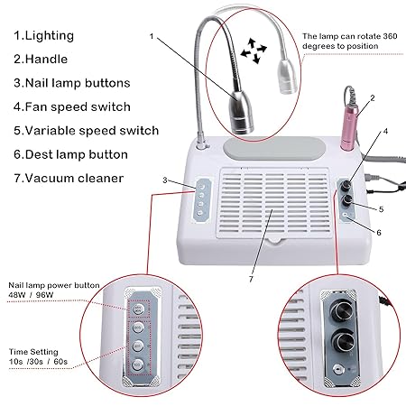 Shills Professional 5 In 1 Nail Machine (dust collector, UV Lamp, table light ,drill machine, hand rest