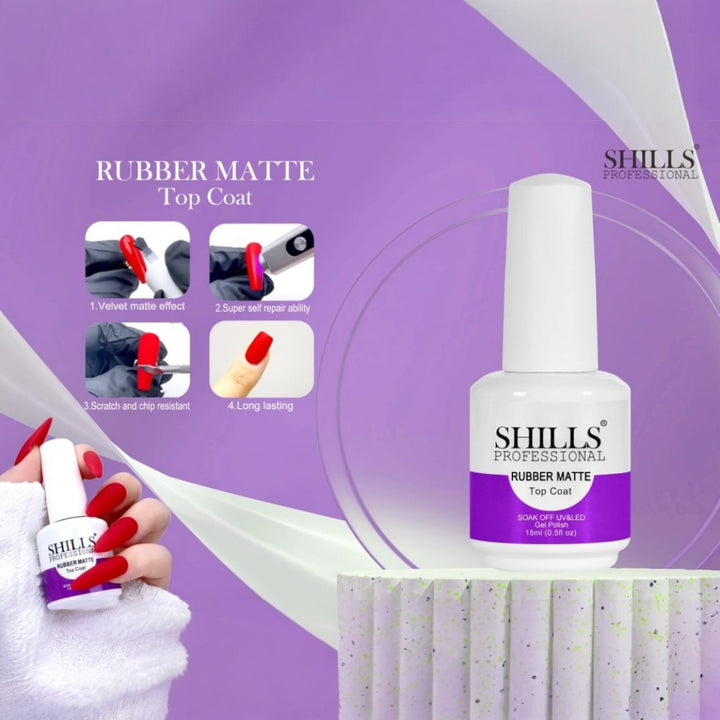 Looking for a modern, trendy matte finish for your manicure? Look no further than Shills Professional Rubber Matte Top Coat! This unique, advanced formula offers a velvety, non-glossy texture that not only enhances your overall look but also strengthens your nails. Experience added protection against...